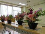 ケアプラザの庭のお花で、押し花アートを作りました。